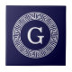Navy Blue Wht Greek Key Rnd Frame Initial Monogram Ceramic Tile