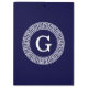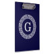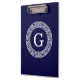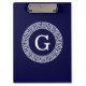 Navy Blue Wht Greek Key Rnd Frame Initial Monogram Clipboard
