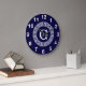 Navy Blue Wht Greek Key Rnd Frame Initial Monogram Large Clock
