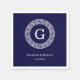 Navy Blue Wht Greek Key Rnd Frame Initial Monogram Napkin