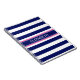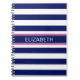 Navy Blue Wht Horiz Stripe Hot Pink Name Monogram Notebook