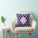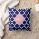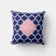 Navy Blue Wht Moroccan #5 Pink 3 Initial Monogram Cushion