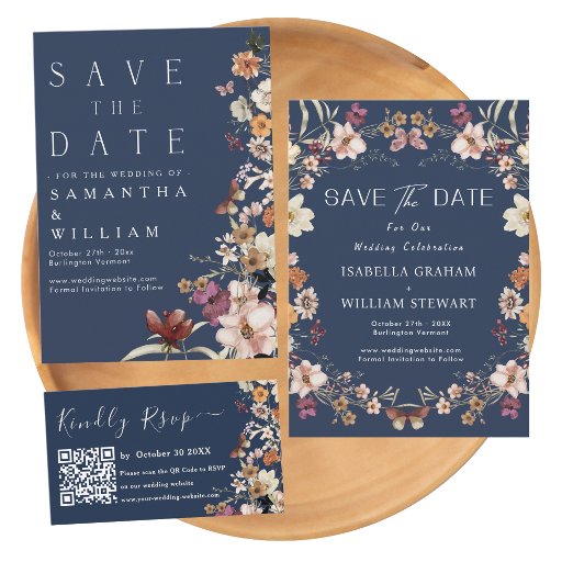 Elegant Navy Blue Pastel Wildflower BohoDesigned by Katrina W.