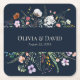 Navy Blue Wildflower Meadow Wedding Square Paper Coaster