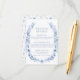 Elegant romantic navy blue wildflower wreath, tiny flower garden, barn or ranch wedding details card.