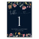 Navy Blue Wildflowers Wedding Table Numbers. This stylish & elegant wedding table numbers features gorgeous hand-painted watercolor Wildflowers. Find matching items in the Navy Blue Wildflower Dreams Collection.