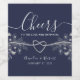 Elegant modern simple calligraphy script navy blue wedding wine label with silver rope heart and gilded floral lace. Perfect choice for contemporary romantic winter weddings! Cheers to the Love and Happiness.