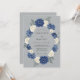 Elegant watercolor roses in deep navy blue and soft cream create a formal floral wreath. Lush greenery and delicate leaves provide a sophisticated contrast against the cool slate grey backdrop. This moody and refined design is ideal for a classic cold-weather ceremony, offering a polished aesthetic for a seasonal event.