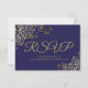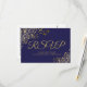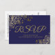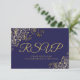 Navy Blue with Elegant Gold Lace Wedding RSVP Card