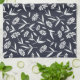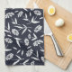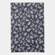Navy Blue with White Flowers Botanical Design Tea Towel