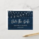 Navy Blue Wood String Lights Wedding Save The Date Postcard