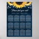 Complement your navy blue rustic wedding party inspired by sunflowers with this elegant seating chart for 12 tables. Matching items available.