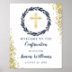 Navy Blue Wreath Gold Glitter Confirmation Welcome Poster