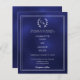 Navy blue wreath monogram wedding invitation