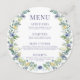 Indulge in vibrant elegance with our rustic spring/summer wedding menu card. Featuring a wreath of blue and yellow flowers and delicate blue text, it adds the perfect touch to enhance your dining experience. Explore our selection for a seasonally inspired addition to your celebration.