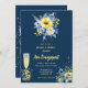 Navy Blue Yellow Floral Gold Brunch & Bubbly Invitation