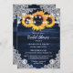 Navy Blue Yellow Sunflower Wood Lace Bridal Shower Invitation