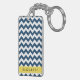 Navy Blue Zigzag, Navy Blue Chevron, Your Name Key Ring