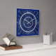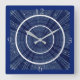 Large Square Wall Clock with 2 White Concentric Circles Design. Modern look with lines emanating out from the center. Navy and white clock that coordinates in a kitchen or any other rooms of that color scheme. Battery operated so you can put your clock anywhere! Abstract design by © RobinMurrayDesign.