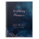 This elegant modern calligraphy wedding planner with rustic floral design in soft blush pink colour on dark navy blue watercolor background, great for modern rustic wedding, spring wedding in evening.