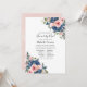 Trendy blush pink and navy blue floral long distance baby or bridal shower by mail invitation.