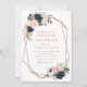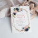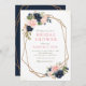 This design features a Navy blue and blush Floral design with a geometric frame with text in the middle.