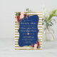 Navy Blush Floral Gold Stripes Rehearsal Dinner Invitation