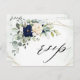 Navy Blush Floral Greenery Geometric Wedding RSVP Postcard