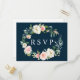 Navy Blush Floral Wreath Wedding RSVP Postcard