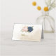 Beautiful wedding place card featuring navy and blush pink flowers and green leaves.