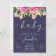 Navy Blush Magenta Floral Baby Shower Invitation that is fully customisable, so you can personalise your baby shower to fit your specific needs. Change the font size, style, and colour by clicking on the 'Personalise' button and then the 'Click to customise further' button if you require more customisation. Re - word the invitation to fit your personal style.