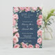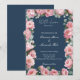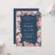 This blush floral navy peony wedding invitation features a rich deep navy blue background, paired with delicate blush pink peony blooms and lush eucalyptus greenery. The design blends timeless elegant calligraphy script with modern typography, framed by subtle botanical accents to set a sophisticated, romantic tone. It’s perfect for classic, French country, or garden-style weddings, offering a luxurious yet effortless aesthetic. Mix and match with other coordinating pieces in the collection for a cohesive look, and explore additional color options in white and blush to suit your event palette.