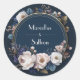 Navy & Blush Peony Floral Round Wedding Sticker