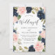 Navy & Blush Watercolor Floral Wreath Wedding Invitation