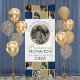 Navy Blue & Bronze Gold 9 Photo Collage Graduation Large Vinyl Banner . Makes for a perfect welcome or yard party sign!