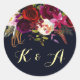 Navy Burgundy Marsala Rustic Boho Floral Monogram Classic Round Sticker