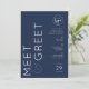 Create modern networking event invites for your business with this minimalist Meet & Greet Invitation design. This navy blue and white company invite is great to use for social company events, dinner & drinks events and more. Featuring stylish typography design and your custom logo, this business event marketing flyer allows you to edit all text and colors so you can tailor it to suit your brand and event aesthetic.