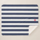 Navy Cabana Stripe & Personalised Red Monogram Sherpa Blanket