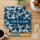 Military navy camouflage seamless pattern background with custom text.
