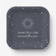 A navy background with a stars and moon pattern around the outside. Inside the design features a sun outline, with 'first trip around the sun' typography featuring your child's name. Perfect for your little one's First Birthday party!