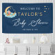 Welcome guests in dreamy celestial style with this moon and stars baby shower banner. Designed in deep navy blue with a golden crescent moon and sleeping baby, this banner brings warmth and elegance to your celebration. The mix of gold and white lettering adds a soft shimmer, making it ideal for a night sky or twinkle-little-star themed baby shower.