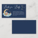 Build a sweet little library with this navy Books for Baby card featuring a peaceful moon illustration with soft gold stars. This celestial night-sky theme pairs beautifully with moon, stars, and twinkle-twinkle baby shower décor. Invite guests to bring a favorite book instead of a greeting card, creating keepsake stories for years to come. Designed to coordinate with the matching moon-themed invitation and stationery suite.