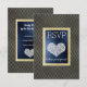 Navy Chevron Gold Heart RSVP simple elegant Card