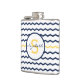 The flask itself is fine. It’s a cheap flask, obviously bought in bulk, however am prepared to overlook that. Given that it is a personalized item, I would have liked to have seen gift boxing instead of the generic packaging. Terrible printing, and/or quality. It’s a cheap, tacky vinyl. It is not cut straight and is also applied in a way that it is overhanging the bottom, causing the glue to catch on items and it will eventually roll and tear, damaging the wrap.
