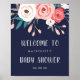 Navy & Coral Floral Bouquet Baby Shower Welcome Poster