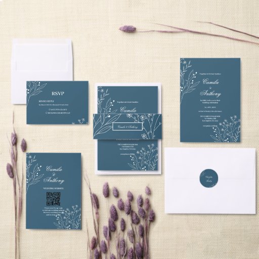 Navy Corner Floral Boho Wedding Seating Charts Invitation
