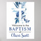 The is the perfect welcome poster for your little ones baptism, christening or communion. Adorned with a large white cross surrounded by navy blue leaf blooms. Great to use to welcome guests at the event either framed or set on a wall.