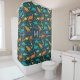 Personalize this cute dinosaur themed shower curtain with your child’s single initial monogram in white lettering for a cool custom touch! Created especially for dino-loving kids, this colorful design features orange, yellow, and mint green dinosaur illustrations on a navy blue background.