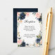 Dark navy blue floral geometric wedding Reception card featuring elegant bouquet of navy blue, royal blue , white , blush rose and sage green eucalyptus leaves and elegant glitter geometric neutral frame. Please contact me for any help in customisation or if you need any other product with this design.