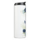 Beautiful water bottle featuring navy and dusty blue flowers and green leaves